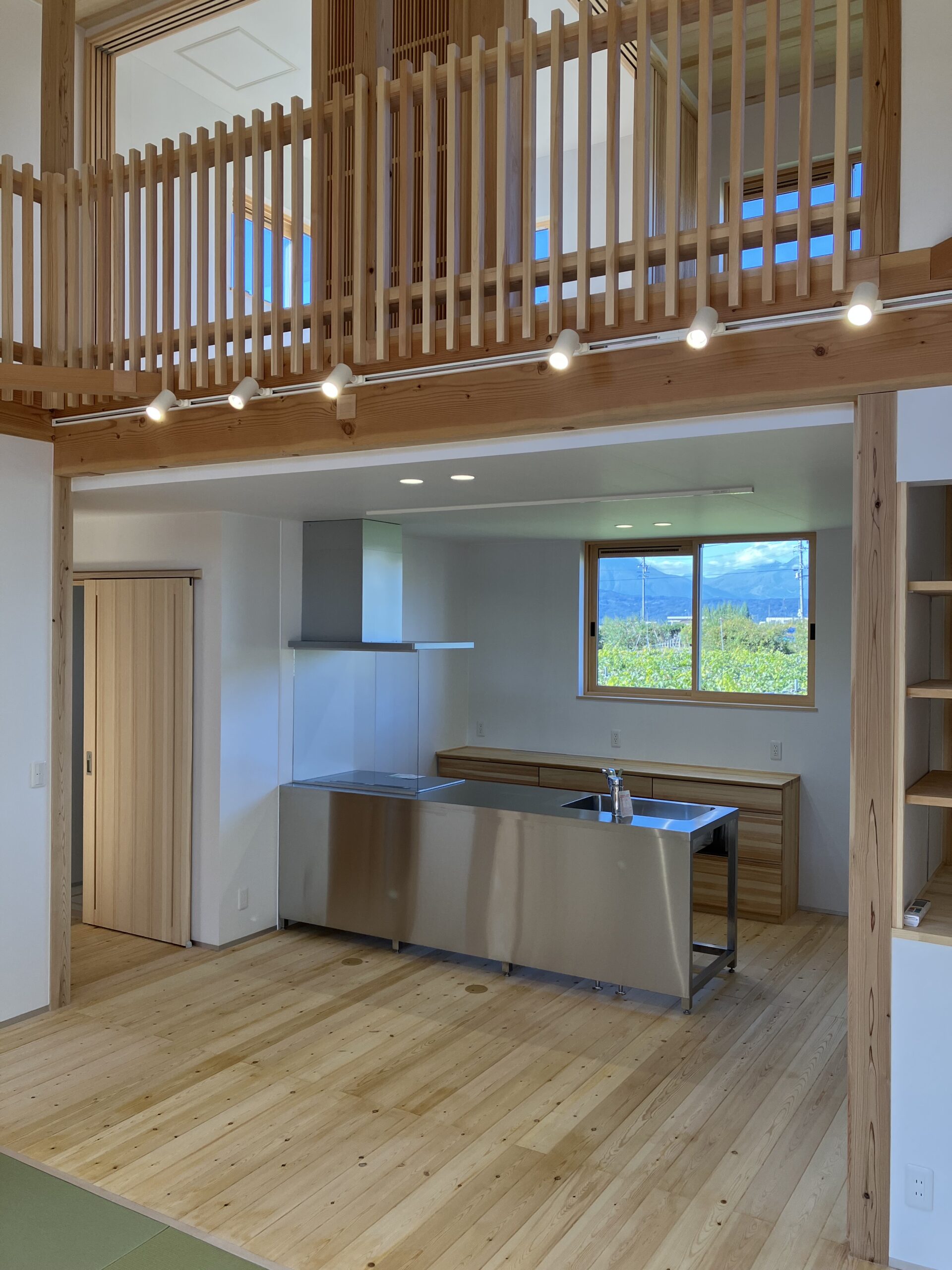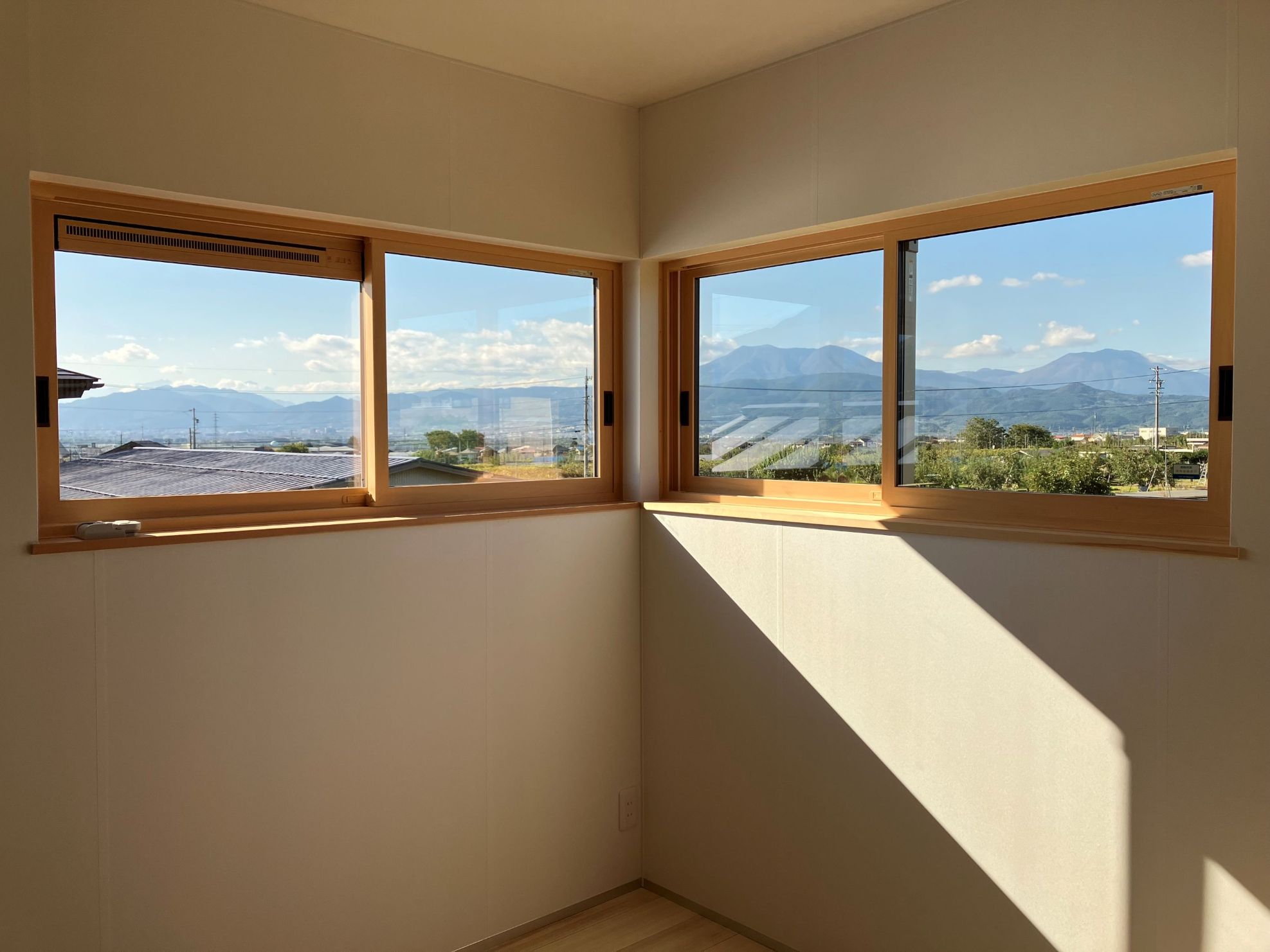 北西方向に開けたお土地で、北信五岳が綺麗に望めるお宅。景色が一番綺麗に望める位置に窓を配置しています。
