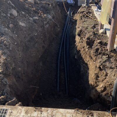 私たちのモデルハウスでも埋設配管工事に入りました。