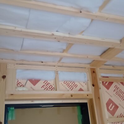 壁や天井に断熱材が入り、これまで骨組みが見えていた空間が少しずつ“部屋らしく”なってきました。断熱材は、これから長く快適に住んでいただくための大事な部分。見えなくなるところだからこそ、丁寧に施工していきます。