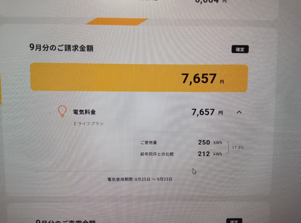 9月の電気代。